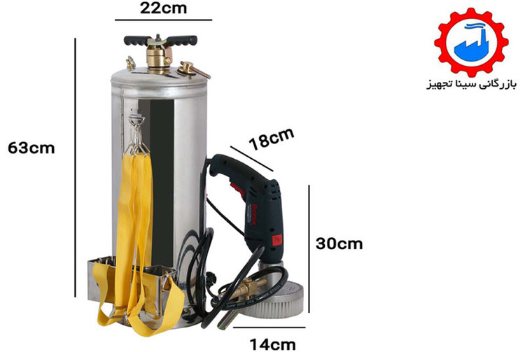 مخزن سمپاش دستی و مبل شوی دریلی، یک مخزن با کیفیت، با دو کاربری متفاوت می باشد.جنس بدنه ی مقاوم استیل و طراحی ساده و کاربری این محصول، نشانه ی کیفیت بالای طراحی و ساخت آن است.علاوه بر مبل شویی، با پر کردن این مخزن از سم گیاهی، میتوان از آن برای سم پاشی گیاهان و درختان مختلف استفاده نمود.