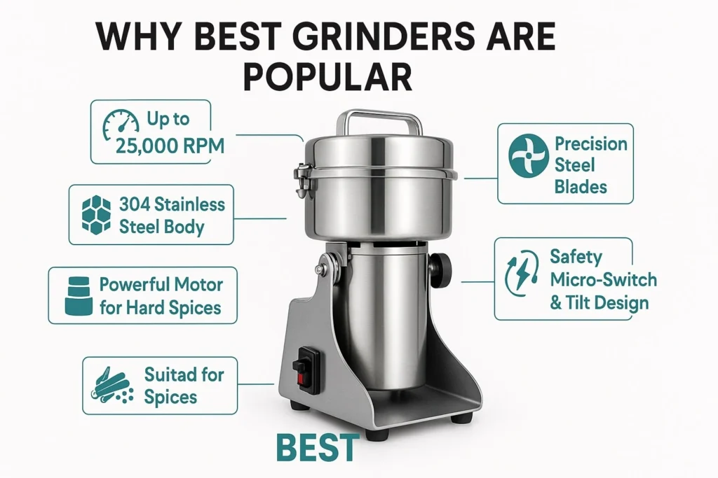 توان و دورِ بالا: مدلهای رایج BEST دور موتور حدود ۲۵هزار دور در دقیقه دارند و برای ادویههای سخت، دانههای سفت، چوب دارچین/زردچوبه و… مناسباند.
